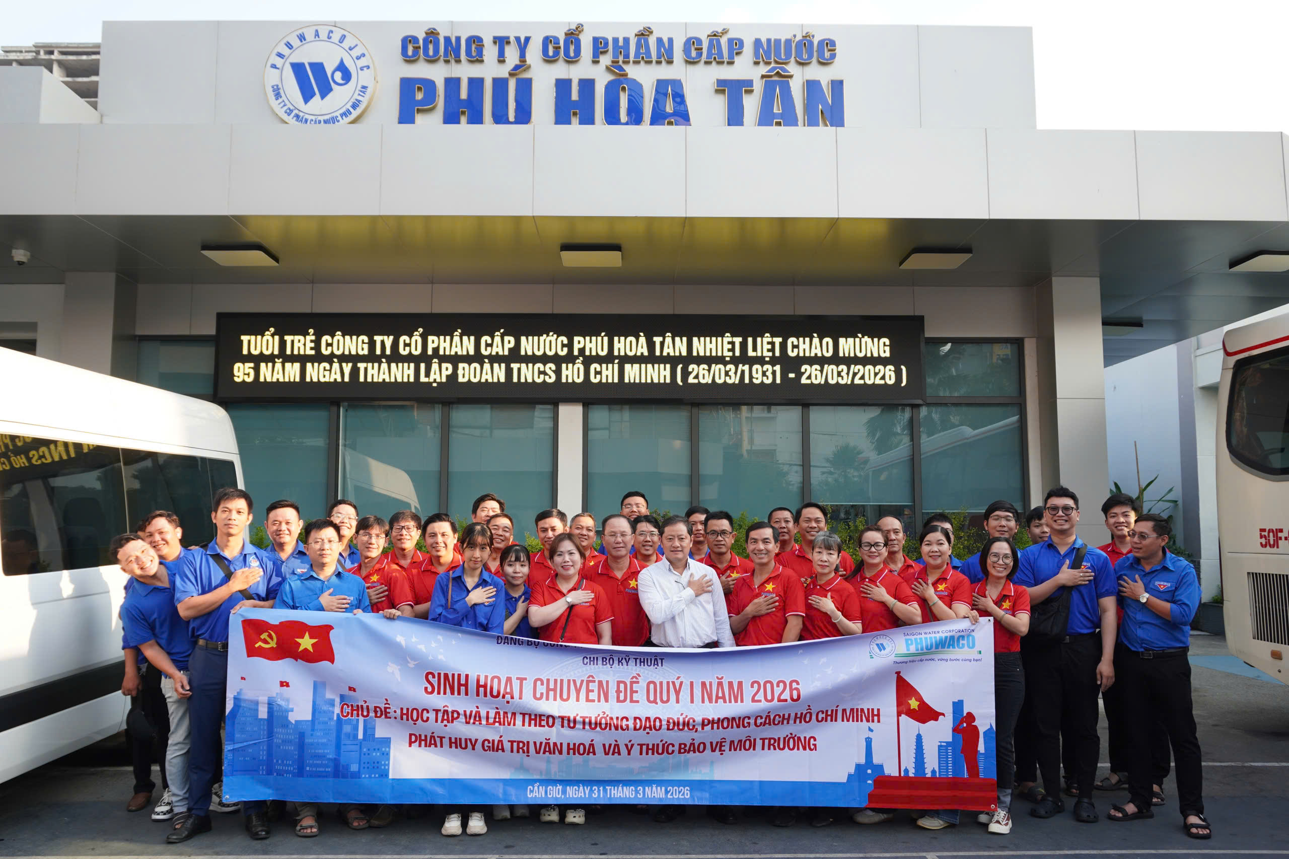 Đẩy mạnh việc thực hiện “Học tập và làm theo tư tưởng, đạo đức, phong cách Hồ Chí Minh” gắn với các hoạt động kỷ niệm 95 năm Ngày thành lập Đoàn Thanh niên Cộng sản Hồ Chí Minh (26/3/1931 – 26/3/2026). Ngày 31/3/2026, tại Chiến khu Rừng Sác – Cần Giờ TP.HCM, Chi bộ Kỹ thuật – Đảng ủy Công ty Cổ phần Cấp nước Phú Hòa Tân tổ chức sinh hoạt chuyên đề quý I năm 2026 "Học tập và làm theo tư tưởng, đạo đức, phong cách Hồ Chí Minh phát huy giá trị văn hóa và ý thức bảo vệ môi trường” kết hợp cùng Đoàn thanh niên Chi đoàn 2 sinh hoạt chủ điểm tháng 3 “Tuổi trẻ Chi đoàn 2 – Bản lĩnh – Nhiệt huyết – Đoàn kết – Sáng tạo”.