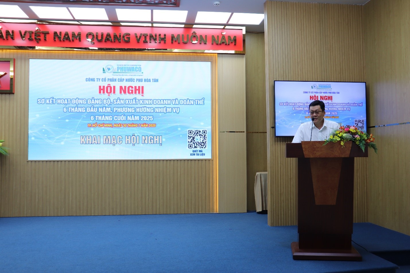 Phát biểu khai mạc Hội nghị, Ông Lý Thành Tài – Bí thư Đảng ủy, Chủ tịch HĐQT Công ty CP Cấp nước Phú Hòa Tân, nhấn mạnh: "Hội nghị sơ kết có ý nghĩa quan trọng nhằm đánh giá khách quan và toàn diện kết quả đạt được trong 6 tháng đầu năm và thẳng thắng nhìn nhận những khuyết điểm từ đó rút ra được bài học và đề ra phương hướng giải pháp thiết thực hiệu quả cho 6 tháng cuối năm. Tiếp tục phát huy vai trò của đảng trong công tác lãnh đạo, chỉ đạo toàn diện mọi hoạt động của đơn vị. 6 tháng đầu năm là giai đoạn có nhiều biến động, yêu cầu cao về sự linh hoạt, chủ động, đổi mới trong cách nghĩ cách làm. Trong bối cảnh đó sự đoàn kết và tinh thần trách nhiệm, sự kiên trì của toàn thể các bộ đảng viên người lao động đã góp phần giúp cho công ty duy trì ổn định, từng bước phát triển, hoàn thành tốt nhiệm vụ được giao”