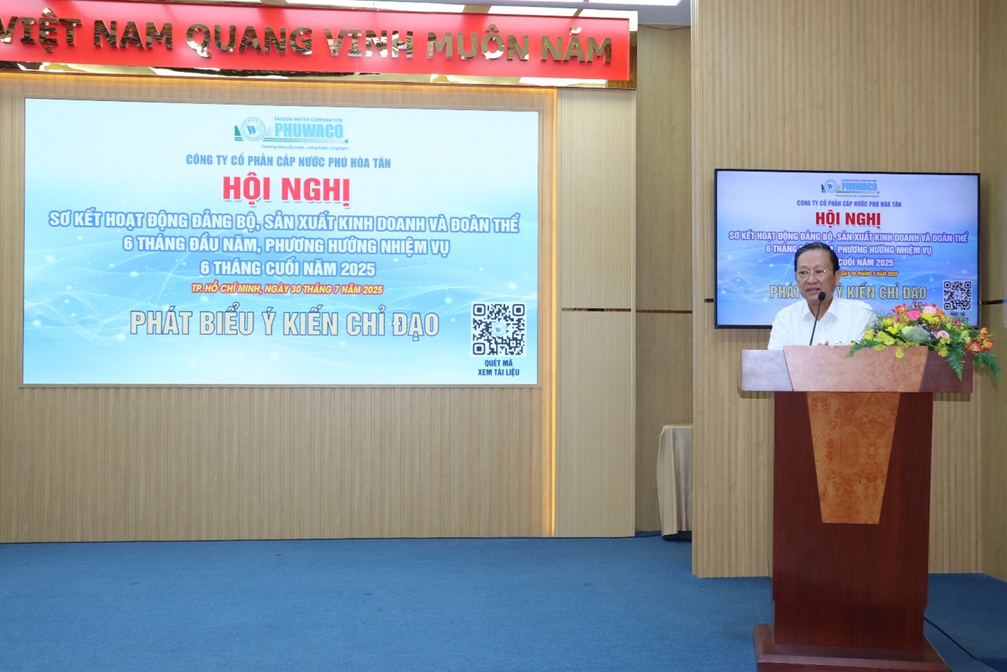 Ngày 30 tháng 7 năm 2025, Công ty Cổ phần Cấp nước Phú Hòa Tân (Công ty) đã tổ chức thành công Hội nghị Sơ kết hoạt động sản xuất kinh doanh, Đảng, đoàn thể 6 tháng đầu năm và Phương hướng, nhiệm vụ 6 tháng cuối năm 2025. Hội nghị là dịp để nhìn lại chặng đường nỗ lực và đề ra định hướng rõ ràng cho những tháng cuối năm.