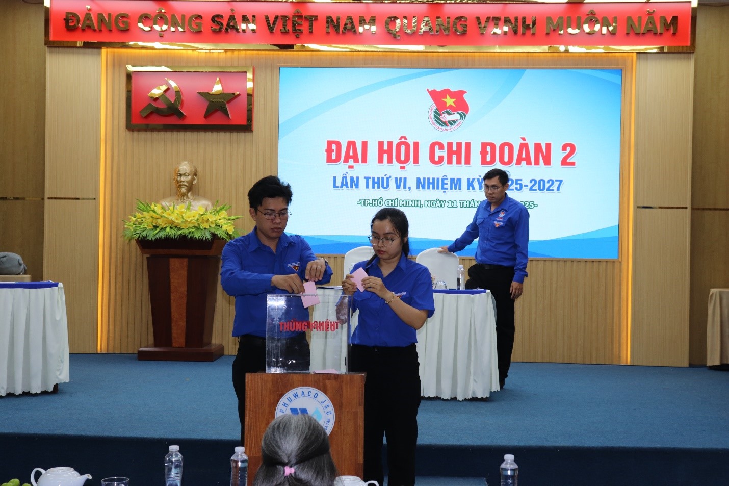 Với tinh thần trách nhiệm cao, Đại hội đã bầu ra Ban Chấp hành Chi đoàn 2, khóa VI gồm 05 đồng chí: Phạm Thị Trường An, Lê Đình Huấn, Phan Châu Tín, Lê Xuân Ân và Võ Tấn Thịnh có phẩm chất, năng lực, nhiệt huyết, đủ sức lãnh đạo công tác Đoàn và phong trào thanh niên trong thời gian tới.
